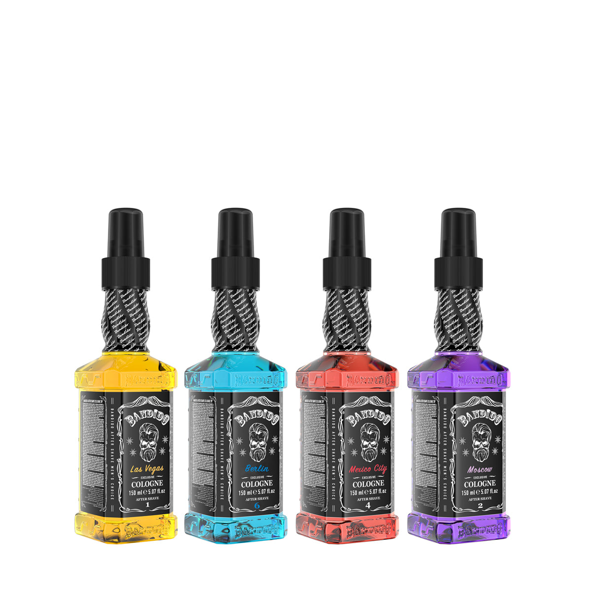 Enrichie en agents apaisants et hydratants, la formule de l'après-rasage Bandido soulage les irritations et les rougeurs, tout en protégeant la peau des agressions extérieures. Les différentes fragrances proposées (Moscow, Mexico, Las Vegas, Berlin) permettent à chaque homme de trouver le parfum qui lui correspond.