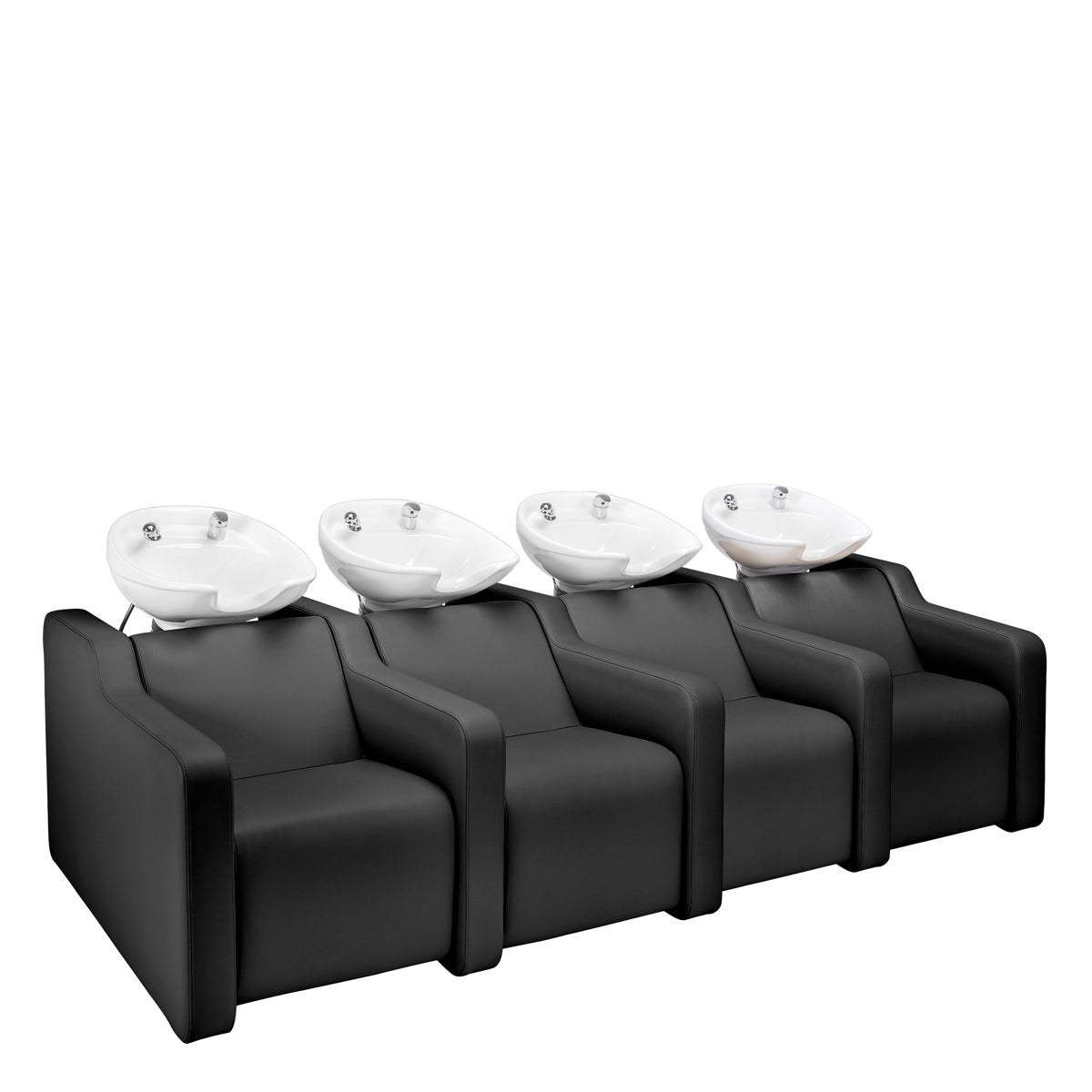En effet, il vous faut un grand salon pour pouvoir y installer ce bac. Avec ses 4 places, vous n'aurez plus à faire attendre vos clients avant de faire le shampoing. Si vous avez plusieurs coiffeurs ou coiffeuses qui doivent faire un shampoing ou rincer une coloration, cela ne posera plus aucun problème !
