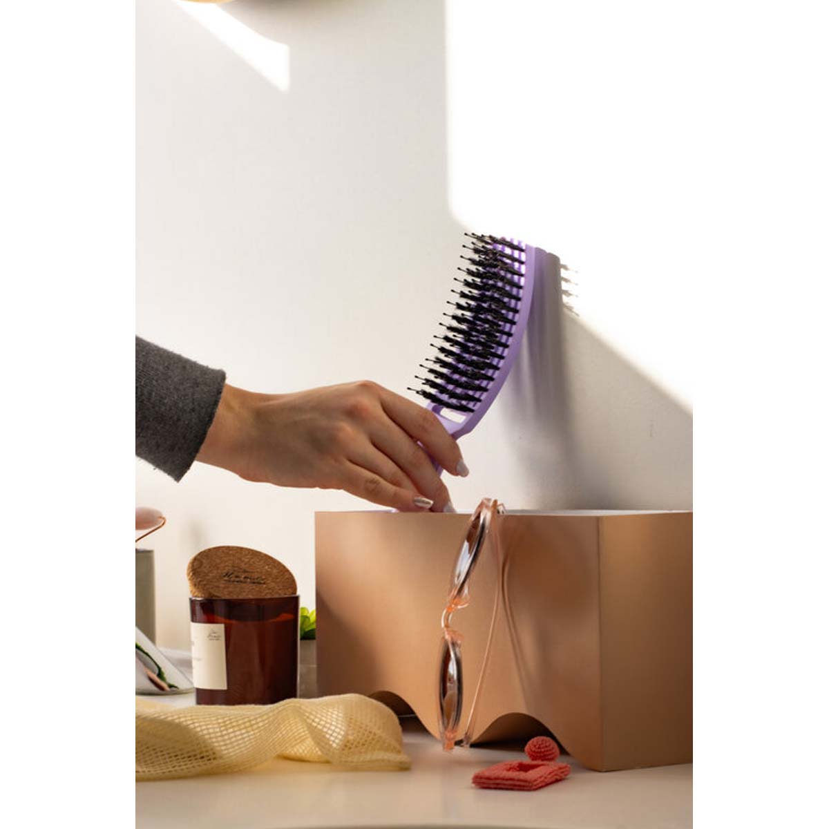 La Brosse FINGERBRUSH est bien plus qu'un simple accessoire de coiffure. Fruit d'un travail manuel raffiné, elle associe la robustesse des poils de sanglier à la souplesse du nylon pour offrir une expérience de démêlage incomparable. Que vous ayez les cheveux fins, lisses ou bouclés, cette brosse s'adapte à vos besoins en prenant soin de vos cheveux à chaque passage. Elle lisse les noeuds sans les casser, tout en répartissant uniformément les huiles naturelles de votre cuir chevelu, pour une chevelure saine et brillante.