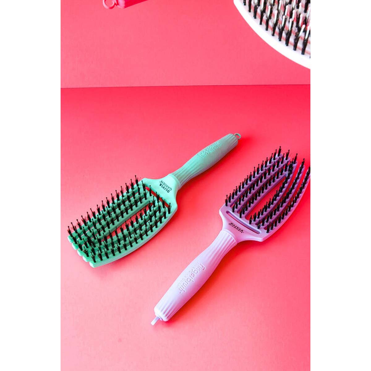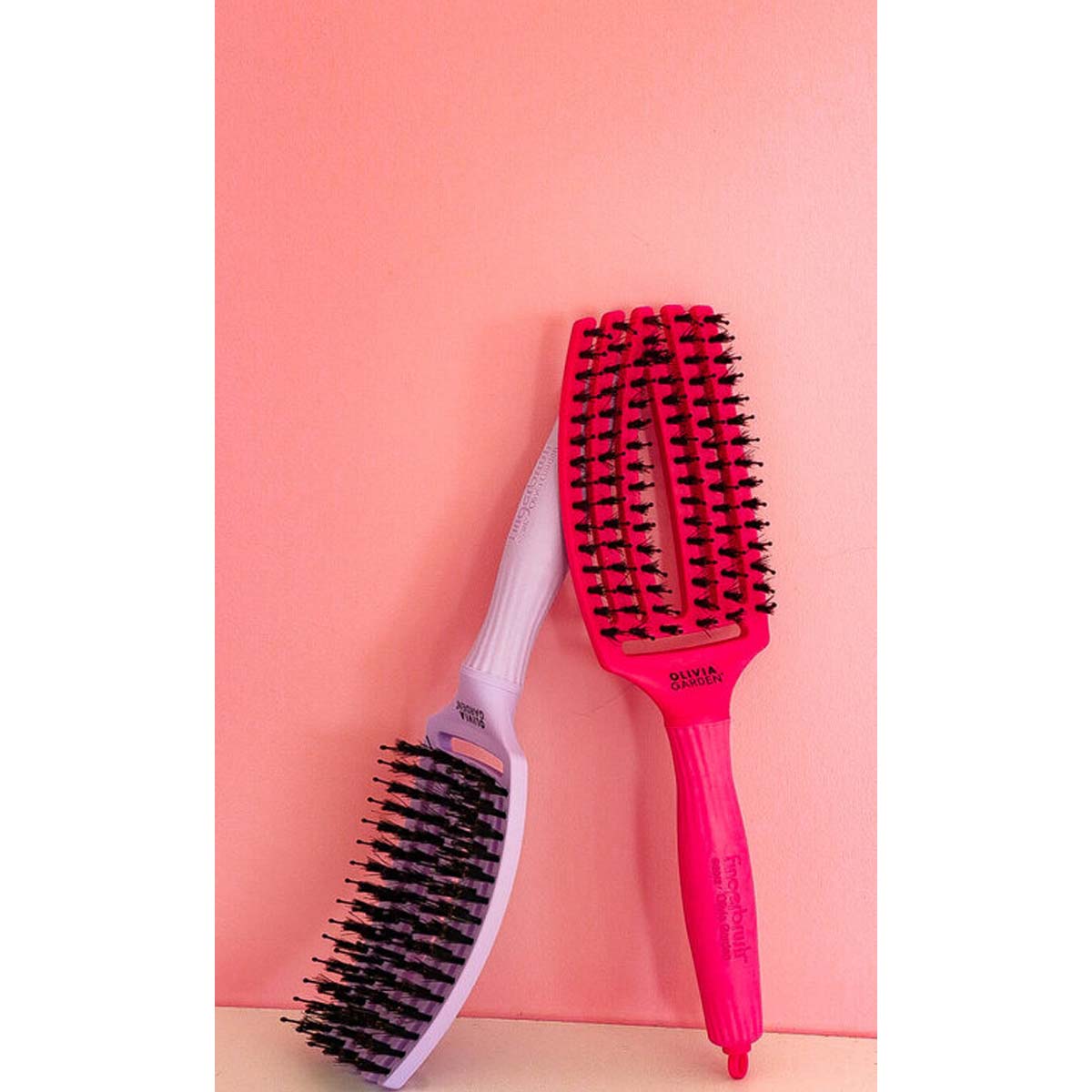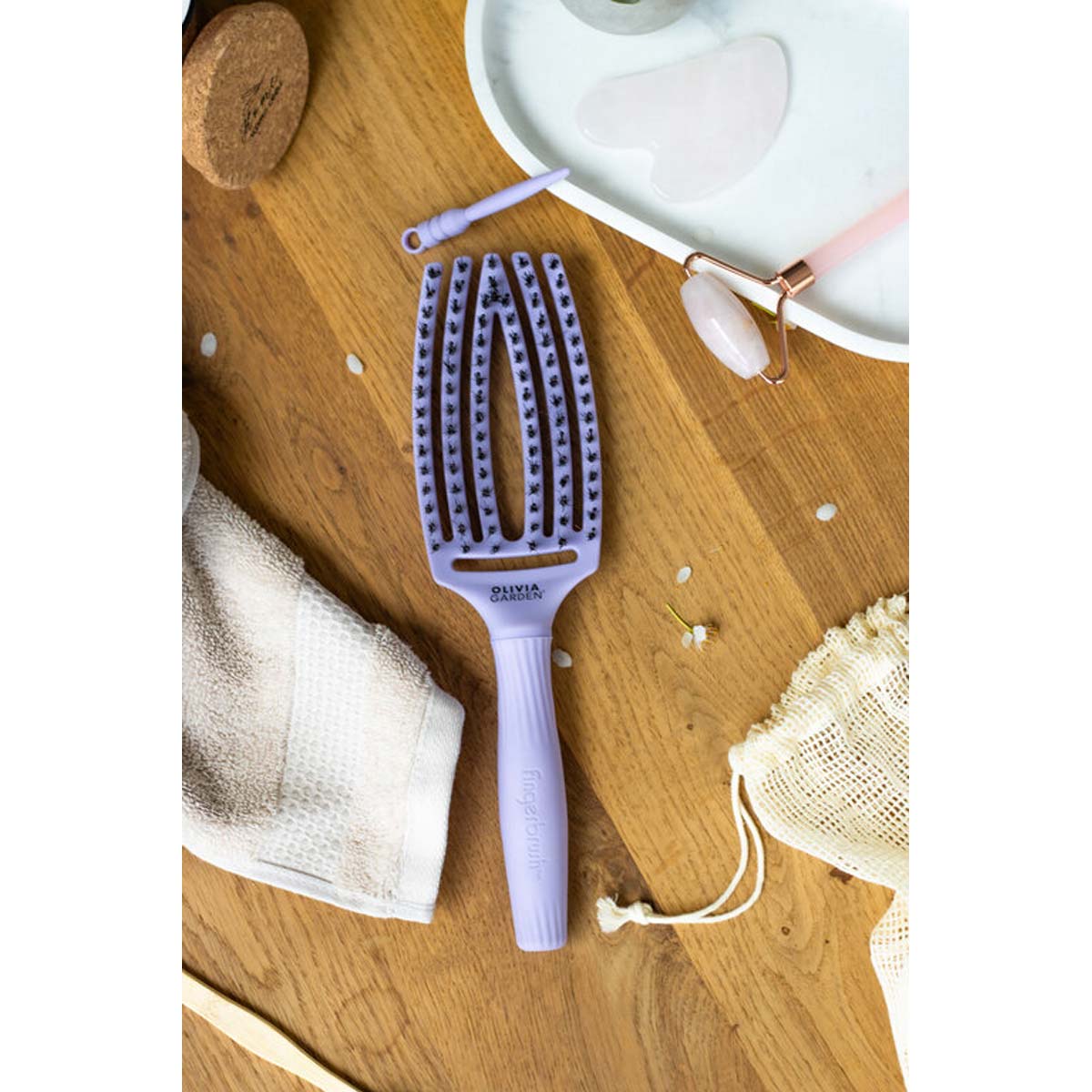 Découvrez la Brosse FINGERBRUSH Care Iconic Lavender Sanglier & Nylon de la marque Olivia Garden, pour démêler sans effort tout en améliorant leur brillance.