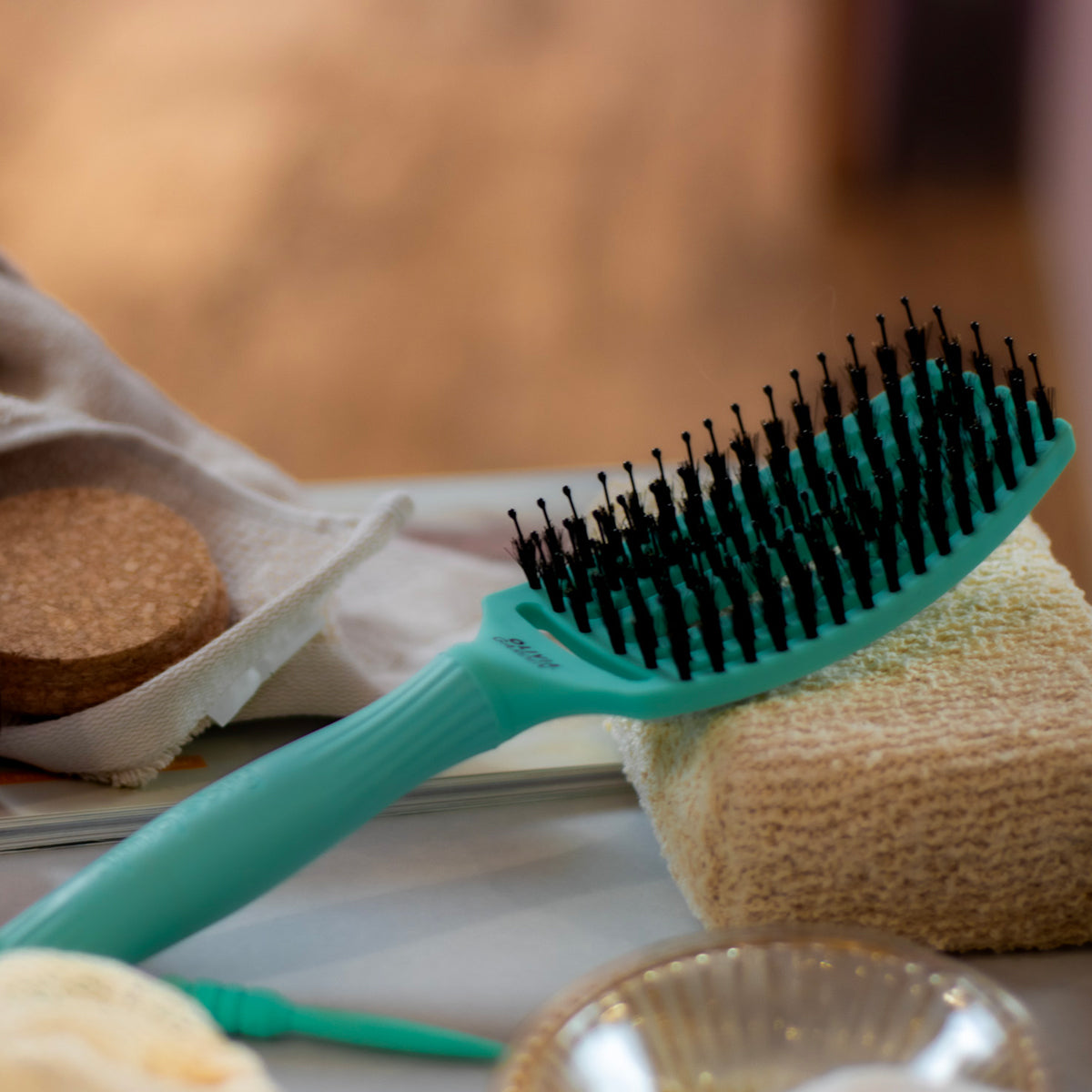 Découvrez la brosse FINGERBRUSH de la marque Olivia Garden. Mélange de poils de sangliers et nylon, pour un démêlage sans effort.