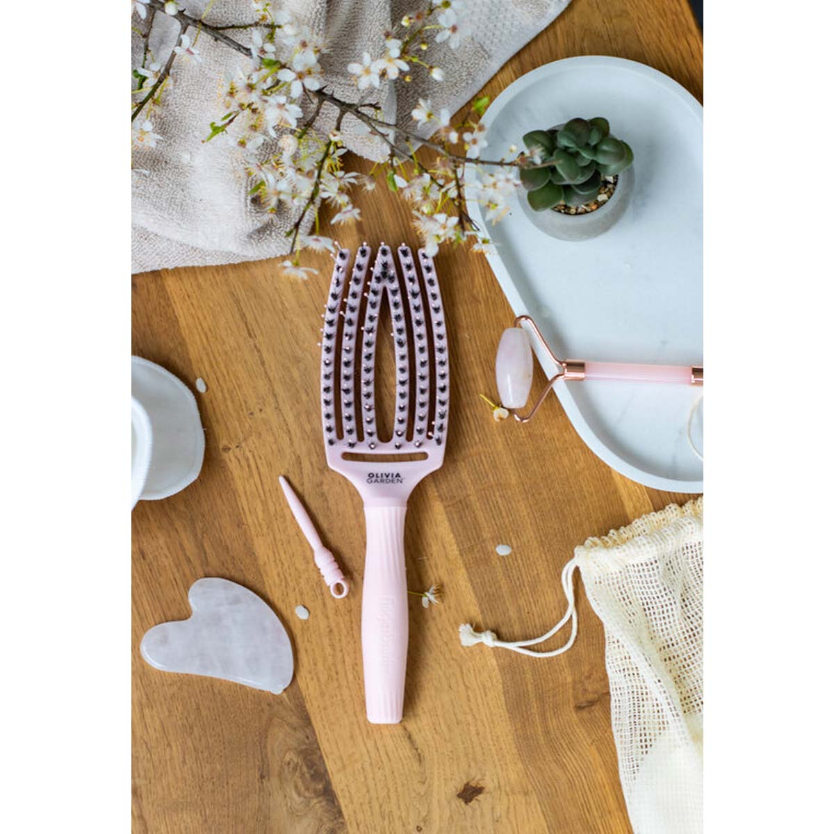 Brosse FINGERBRUSH CARE ICONIC Pastel Pink Sanglier & Nylon Taille M - Olivia Garden - Gouiran Beauté