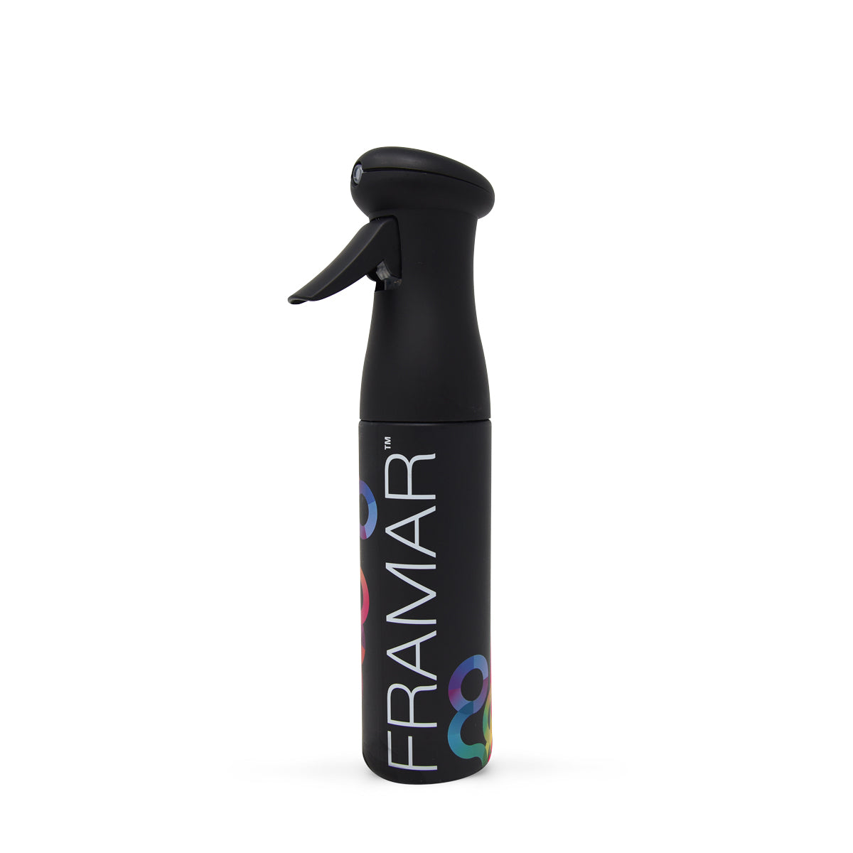 Découvrez le brumisateur Noir de la marque Framar. Il a un maintien agréable en main, et diffuse une brume régulière sans gouttes d'eau qui jaillissent d'on ne sait où.