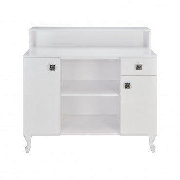 Du point de vue des rangements, elle est très fonctionnelle. Elle est équipée d'un tiroir, de 2 niches et de 2 portes.