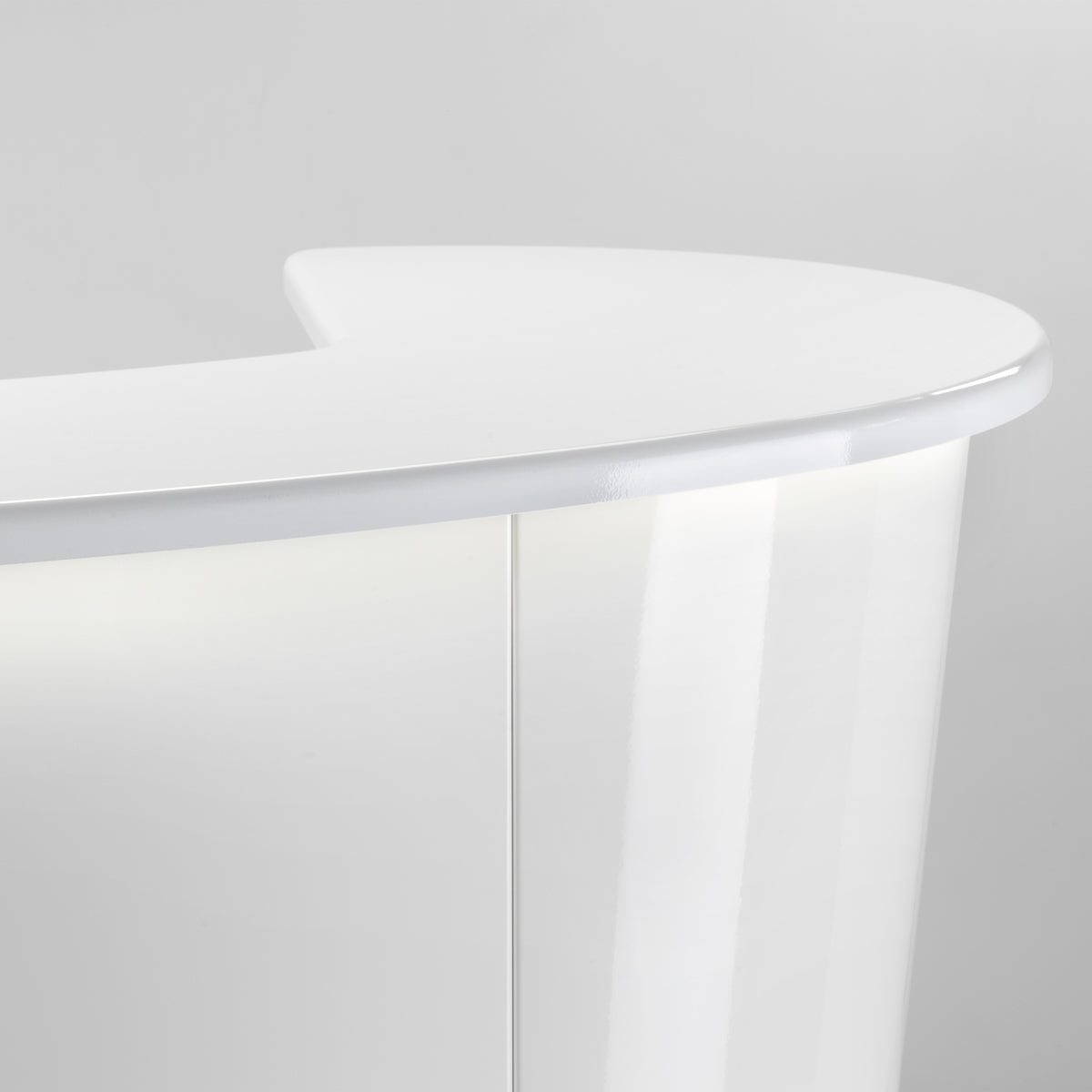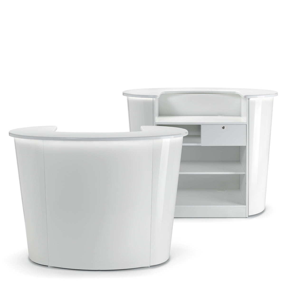 La structure est faite en particules de bois hydrofuge blanc opaque et le devant de la caisse est blanc brillant.