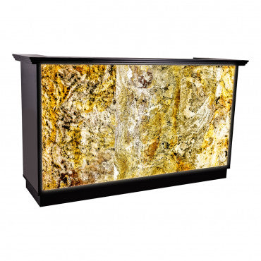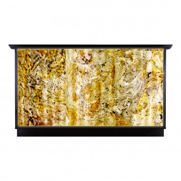 En effet le devant est en pierre naturelle, éclairé par des LED. Le pourtour et le derrière de la caisse est noir. Nous vous garantissons un effet sensationnel, d'une beauté exceptionnelle. Grâce à son style beaucoup de personnes s'arrêteront devant votre salon et auront envie de rentrer à l'intérieur.