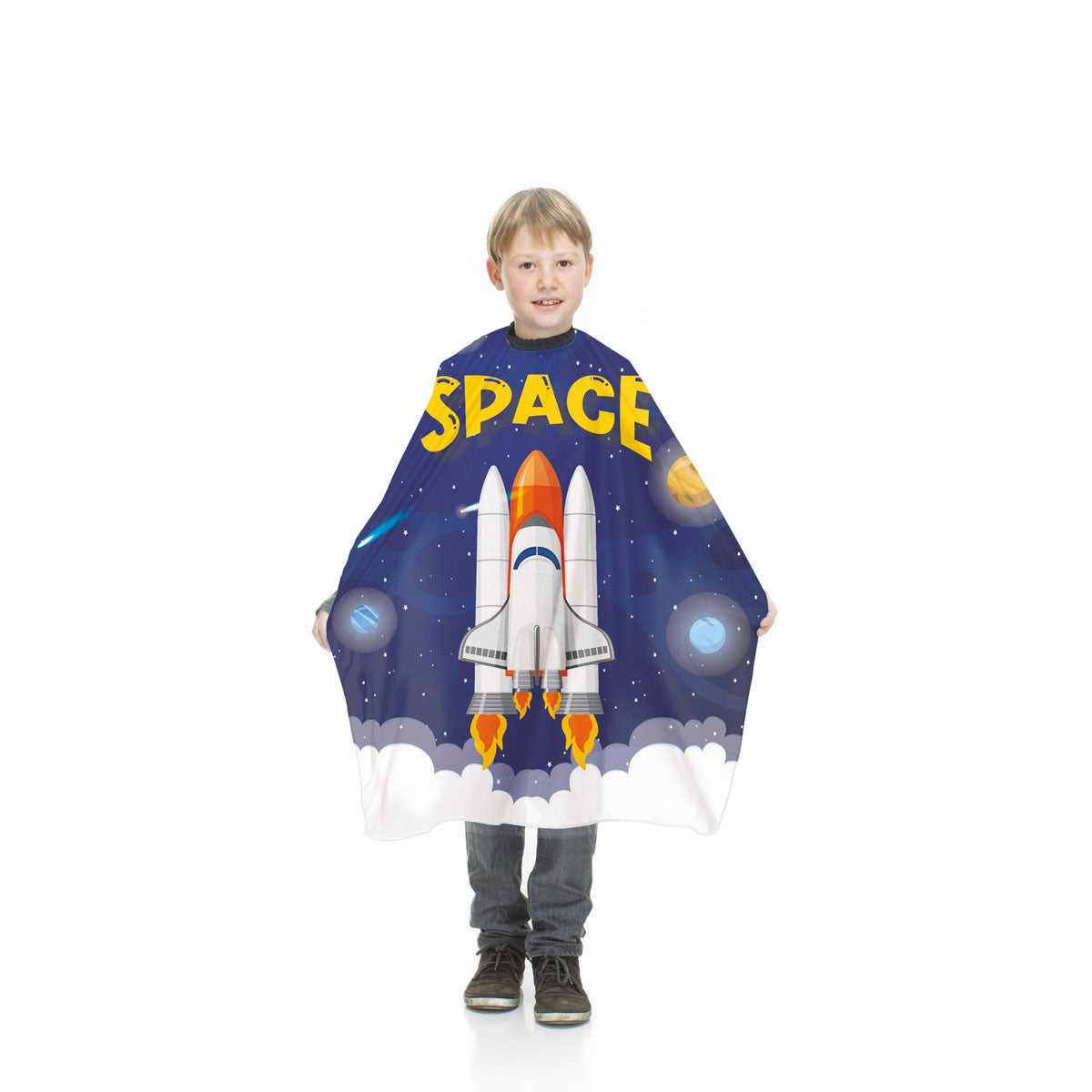Afin de mettre en confiance les enfants lorsque vous leur coupez les cheveux, la marque Xanitalia vous propose sa cape avec motif Fusée ou Licorne.