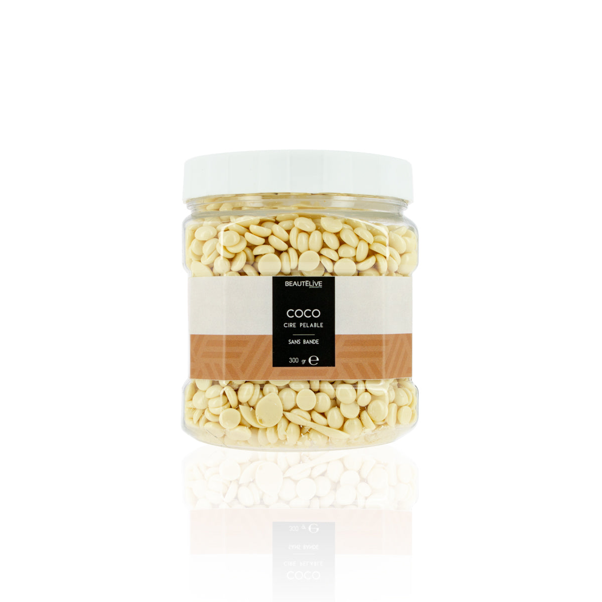 Découvrez la cire épilation liposoluble coco de la marque Beautélive. Se présente en pastilles à faire fondre dans un chauffe cire. Contenance 300g ou 1kg. Cire pelable à utiliser sans bandes.