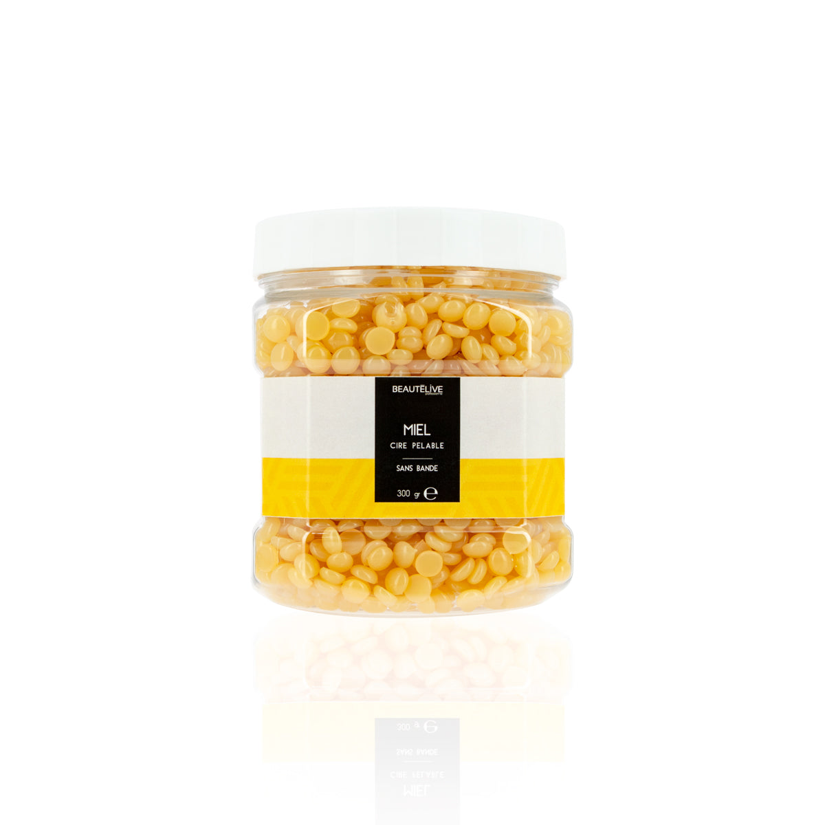 Découvrez la cire épilation liposoluble miel de la marque Beautélive. Se présente en pastilles à faire fondre dans un chauffe cire. Contenance 300g ou 1kg. Formulation sans collophane. Cire pelable à utiliser sans bandes.