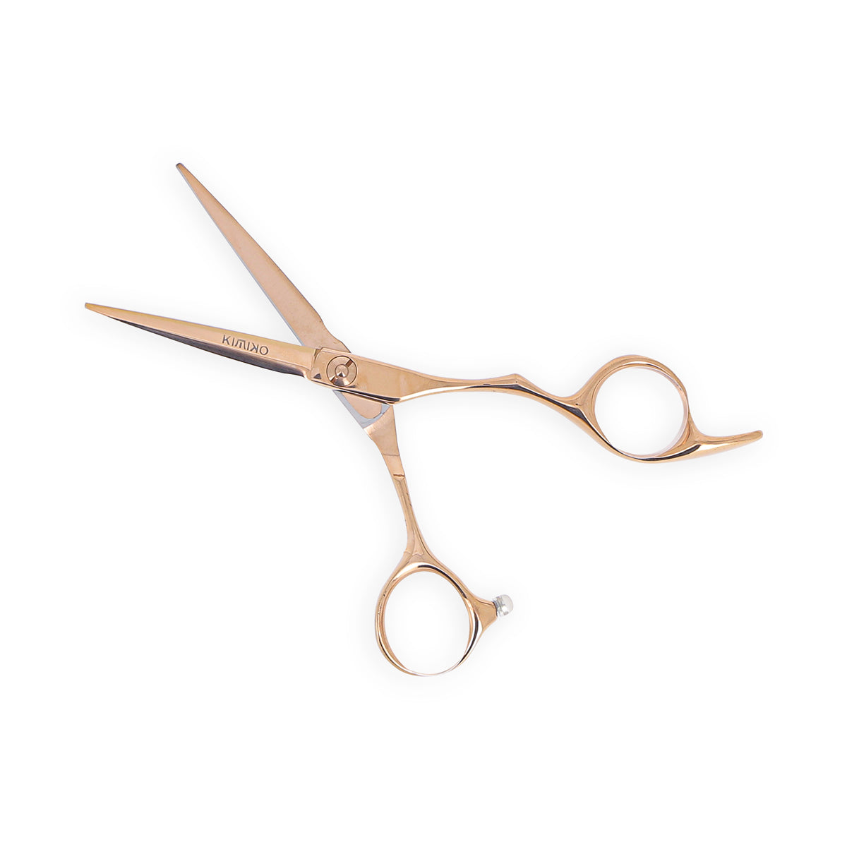 Découvrez les ciseaux de la marque KIMIKO Access, de couleur rose gold et d'une de 5.5. Ces ciseaux sont décalés et offrent une coupe nette et précise.