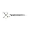 Découvrez les ciseaux SNAKE pour gauchers de la marque Mashiro. D'une taille de 7,5", il est en acier JAPAN VG10 enrichi en cobalt et molybdène. Ses lames sont de type rasoir sans micro-denture.