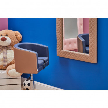 En effet, cette coiffeuse est à taille d'enfant, ce qui lui permettra d'être dans un environnement plus "familier". Vous pouvez choisir le cadre du miroir en choisissant parmi plusieurs skaï. Le cadre est rembourré. De ce fait, vous pourrez faire en sorte que la coiffeuse soit assortie avec le reste de votre mobilier.