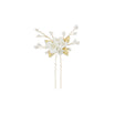 Sublimez votre coiffure de mariée avec l'épingle à cheveux PIA de la marque Beautélive, une création délicate inspirée de la nature. Ses fleurs blanches immaculées et ses feuilles dorées apporteront une touche de romantisme et de fraîcheur à votre look.