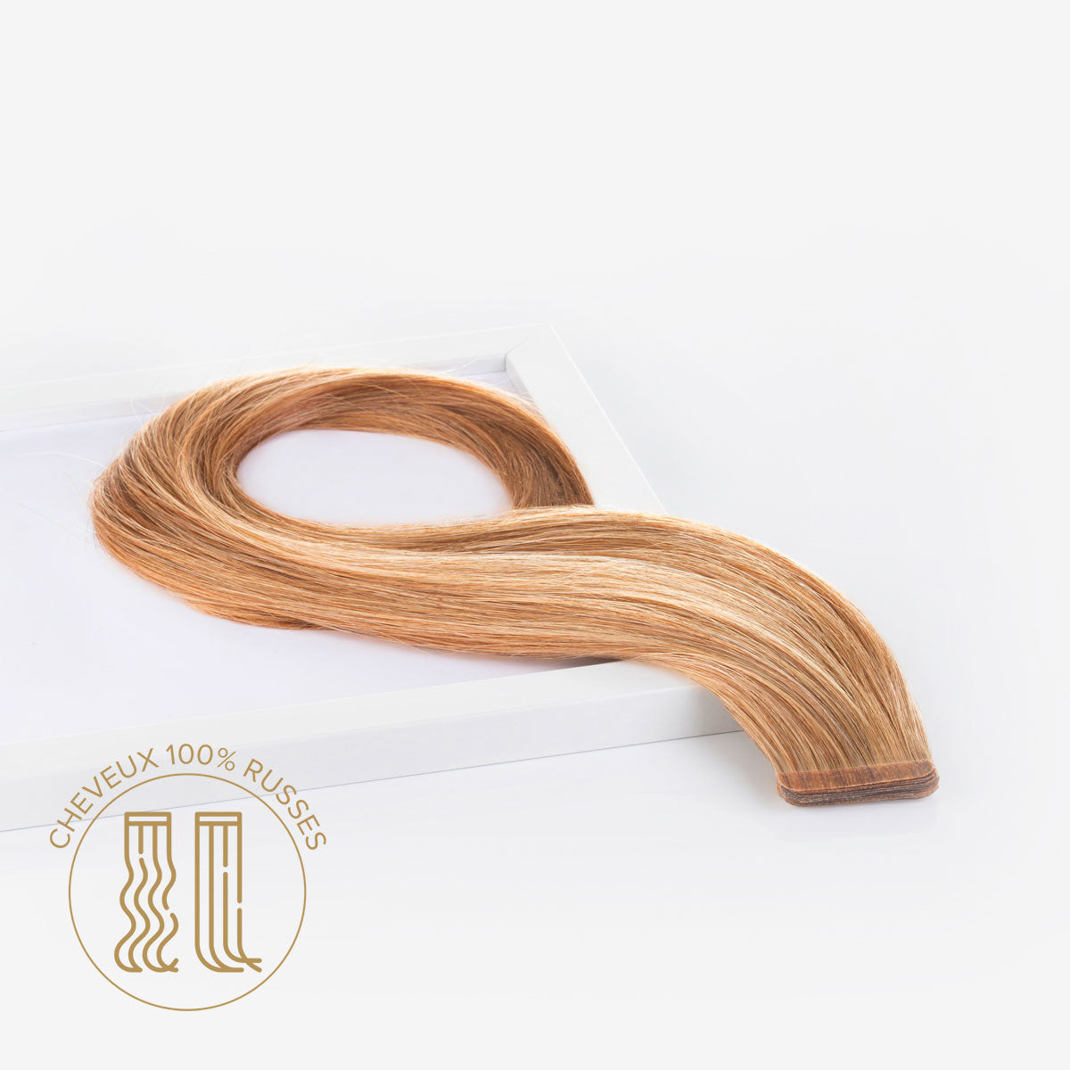 Découvrez les extensions adhésives de la marque SEISETA. Les cheveux sont RUSSES de qualité Remy Hair, offrant la meilleure qualité au monde, les plus rares et les plus précieux. Elles permettent une application rapide des extensions, avec des résultats naturels. Chaque paquet contient 6 mèches d'une longueur de 40/45cm, pour une largeur de 4cm.