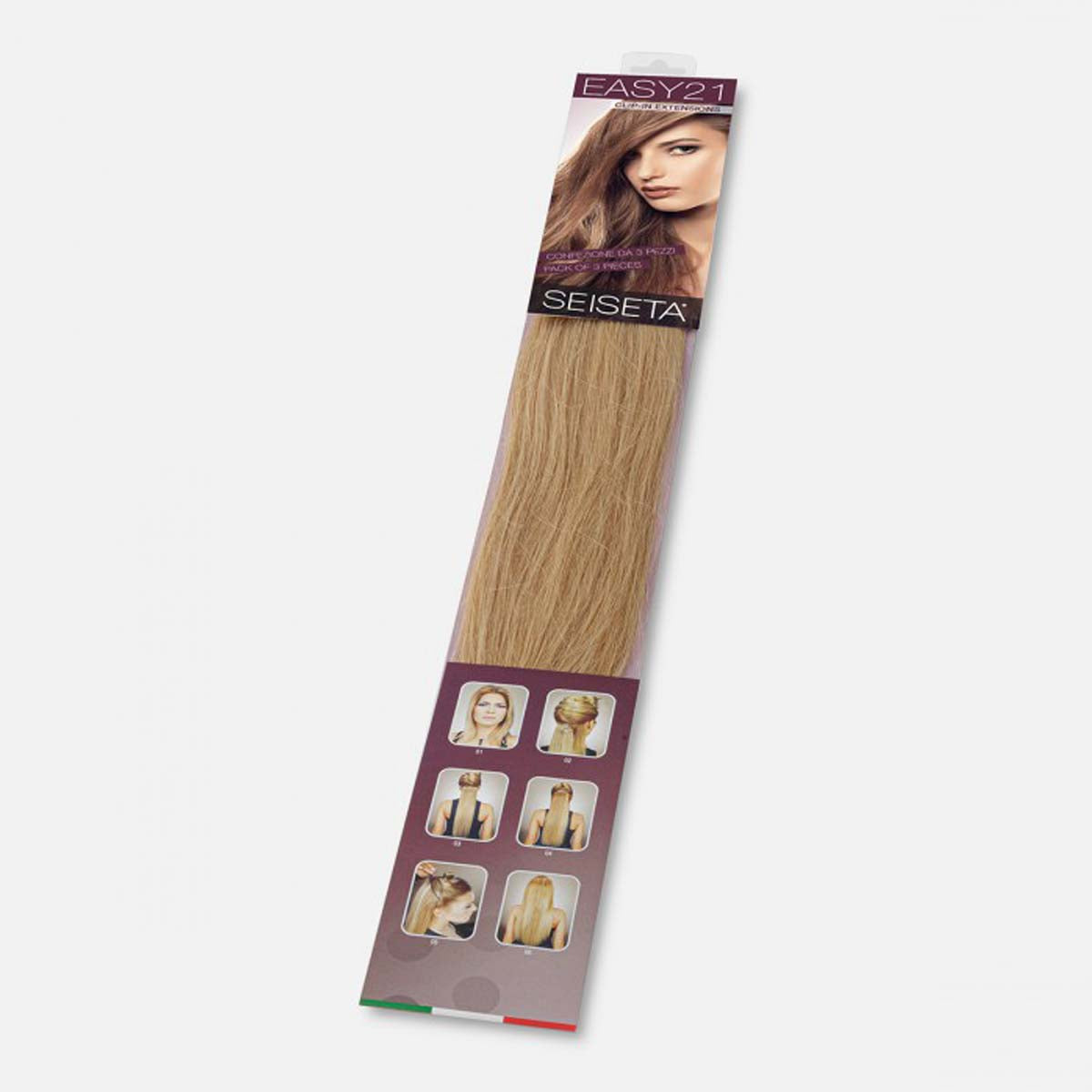 La gamme d'extensions de cheveux à clips EASY 21 est fabriquée en Italie. Les cheveux Remy 100% naturels utilisés sont soigneusement sélectionnés et transformés à la main dans les laboratoires SEISETA. Le respect des cuticules, l'absence de silicone et l'utilisation de couleurs 3D font de ces extensions un choix de qualité supérieure.