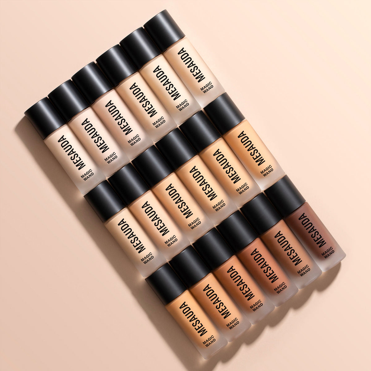 Découvrez le fond de teint MAGIC WAND de la marque italienne Mesauda. Un fond de teint fluide pour un fini poudré, idéal pour camoufler les imperfections et unifier le teint.