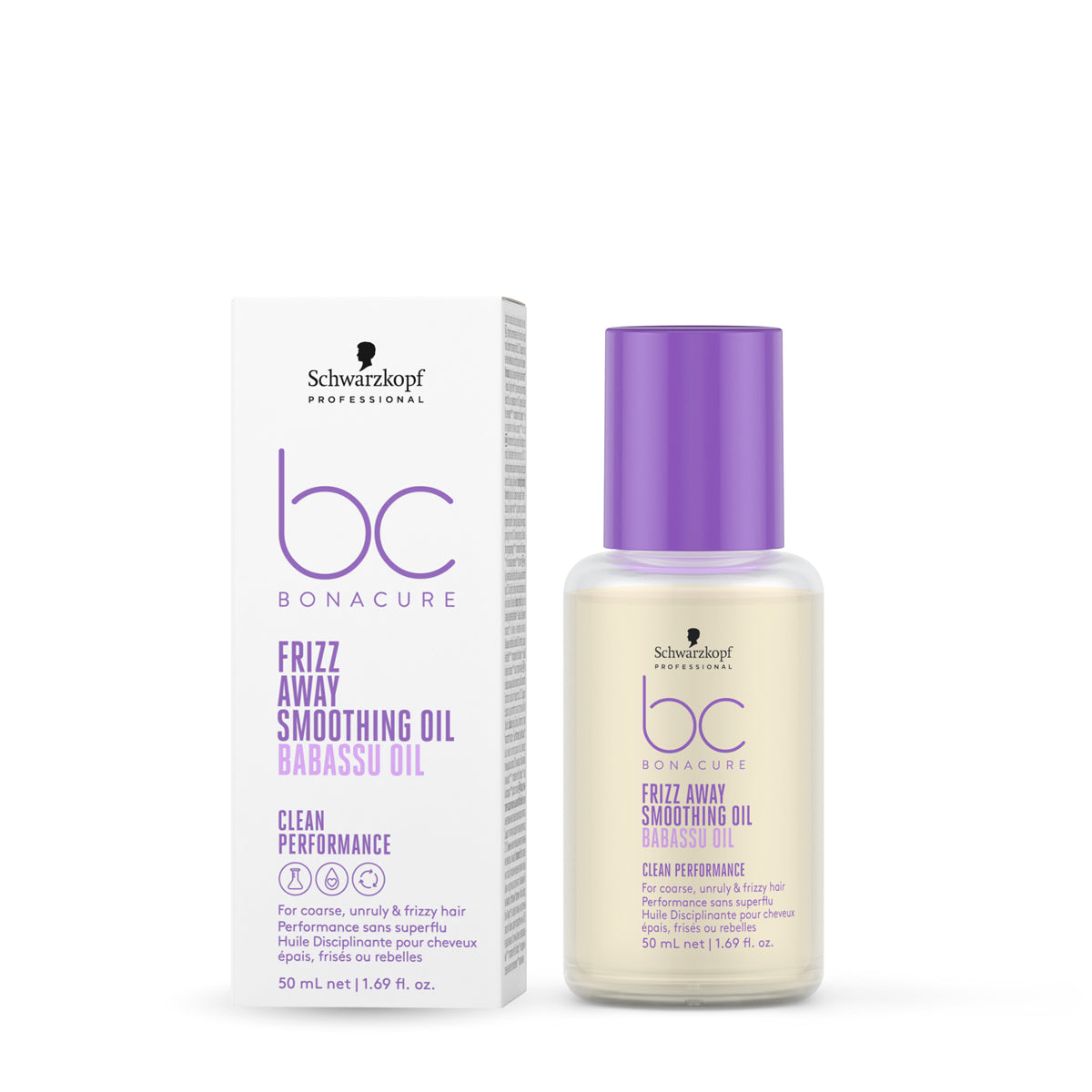 Découvrez l'huile disciplinante de la gamme BC CP FRIZZ AWAY de Schwarzkopf. De formule 100% végane, sans sulfates, sans silicones, ni coorants artificiels, ce sérum va faciliter le démêlage, et laisser les cheveux doux et brillants.