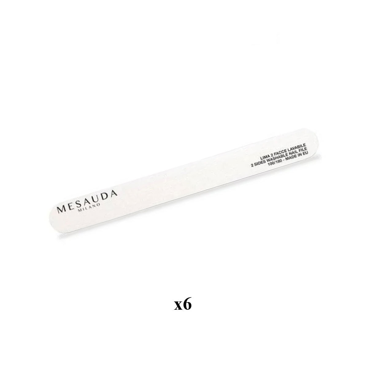 Découvrez le lot de 6 limes à ongles droites blanches 2 faces 100/180 de la maruqe MNP Mesauda. Ces limes pourront seriv à la fois à former votre ongle naturel, enlever la démarcation entre une capsule et l'ongle naturel