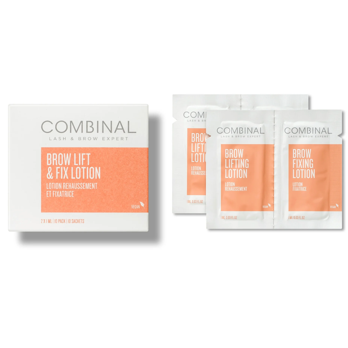 - 10 doubles sachets comprenant deux lotions essentielles pour le réhaussement des sourcils
