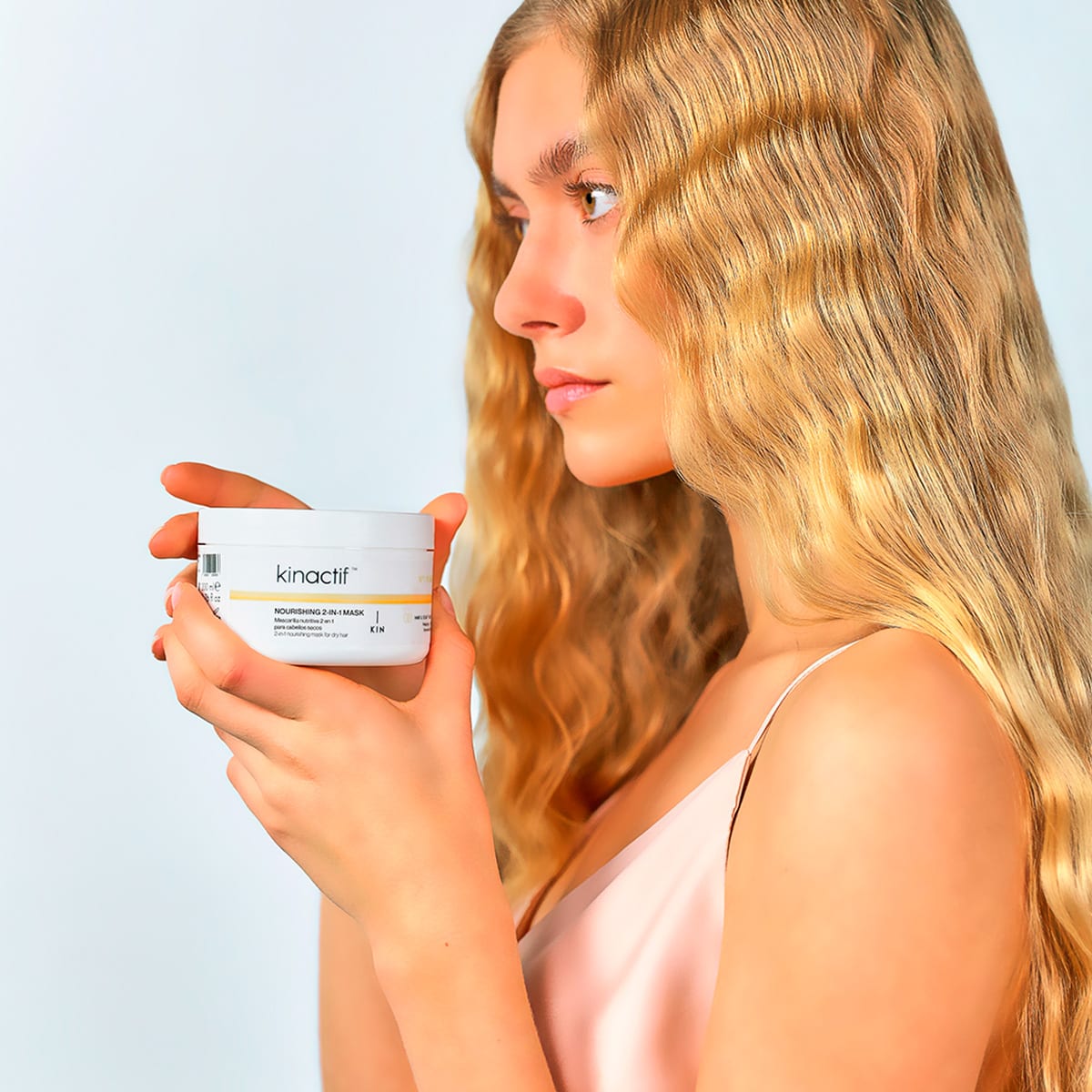 Dcouvrez le masque nourrissant 2 en 1 de la marque Kinactif. Un masque qui va nourrir intensément les cheveux secs, et les rendre doux et brillants. Selon le temps de pose, il servira d'après-shampoing ou de soin intensif.
