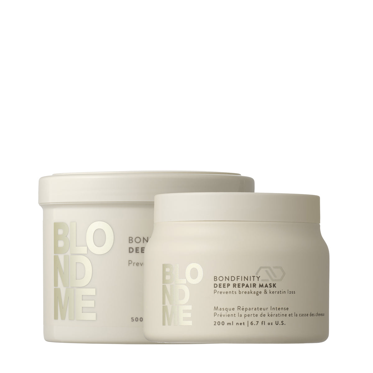 Découvrez le masque réparateur Bondfinity de la gamme BlondMe de chez Schwarzkopf Professionnel. Idéal pour les cheveux blonds abîmés afin de renforcer leur structure.