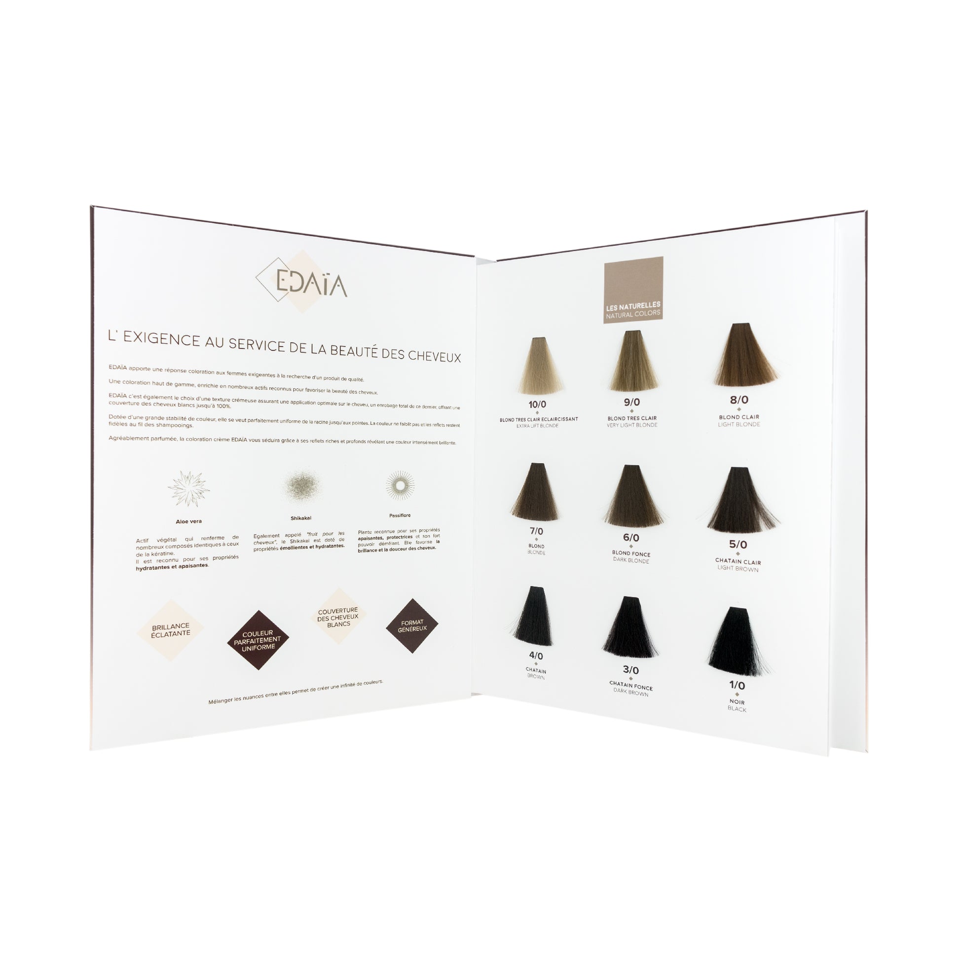Découvrez le nuancier de la coloration permanente EDAÏA Délicatesse de crème, un acessoire indispensable pour bien choisir sa nuance ! Pratique et complet, ce nuancier regroupe toutes les teintes de la gammes selon les différents reflets proposés.