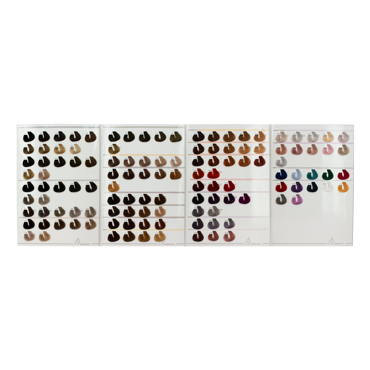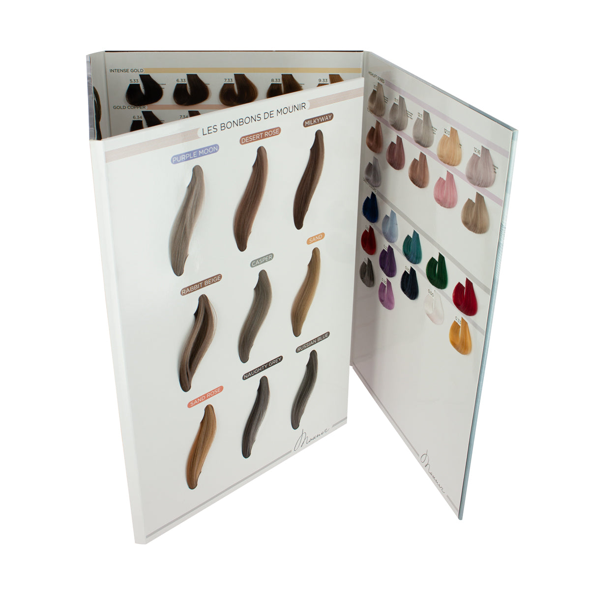Découvrez le nuancier de colorations de la marque Mounir, un nuancier qui regroupe toutes les colorations de la gamme Mounir ainsi que les bonbons de Mounir. Vous pourrez choisir vos colorations en un coup d'oeil pour une création unique.