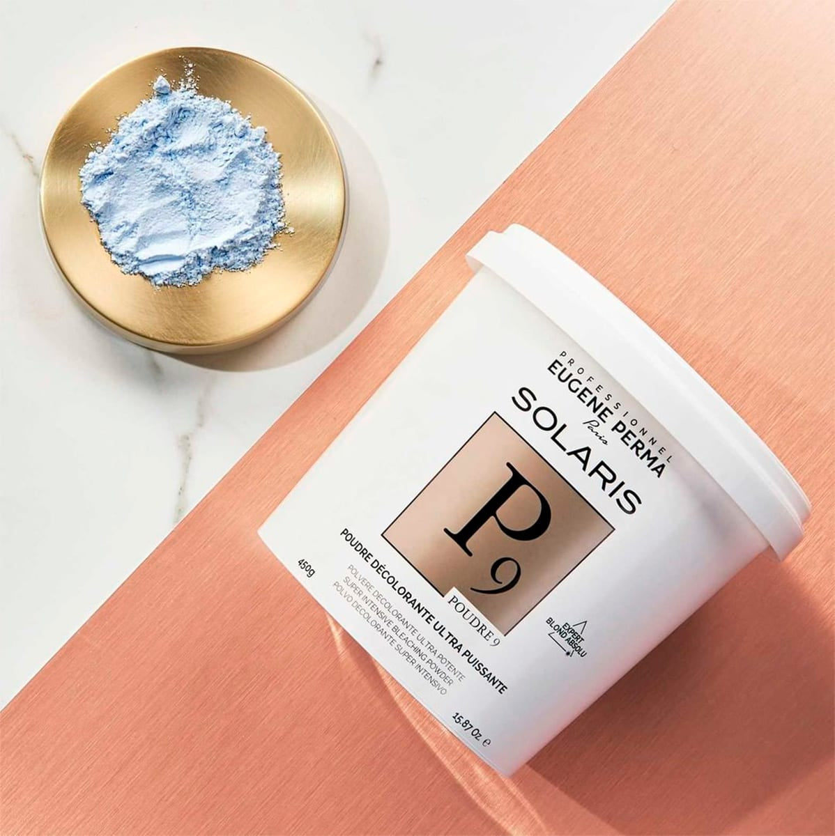 Découvrez la poudre décolorante ultra puissante 9 tons Solaris de la marque Eugène Perma, cette poudre décolorante vous permettra de décolorer jusqu'à 9 tons sur un cheveu naturel et sain. De quoi offrir un blond presque blanc à vos clientes qui rêvent de cette tendance  !