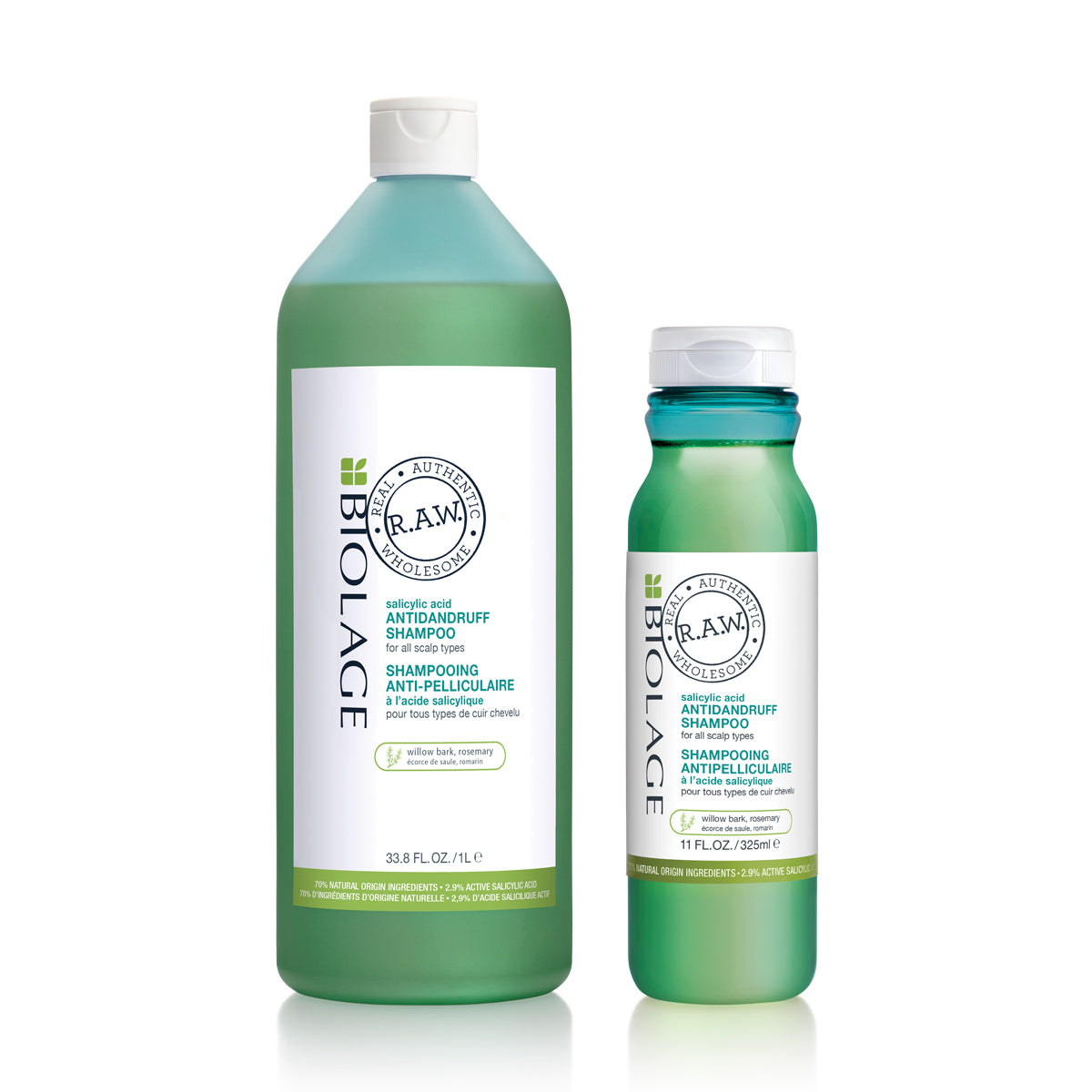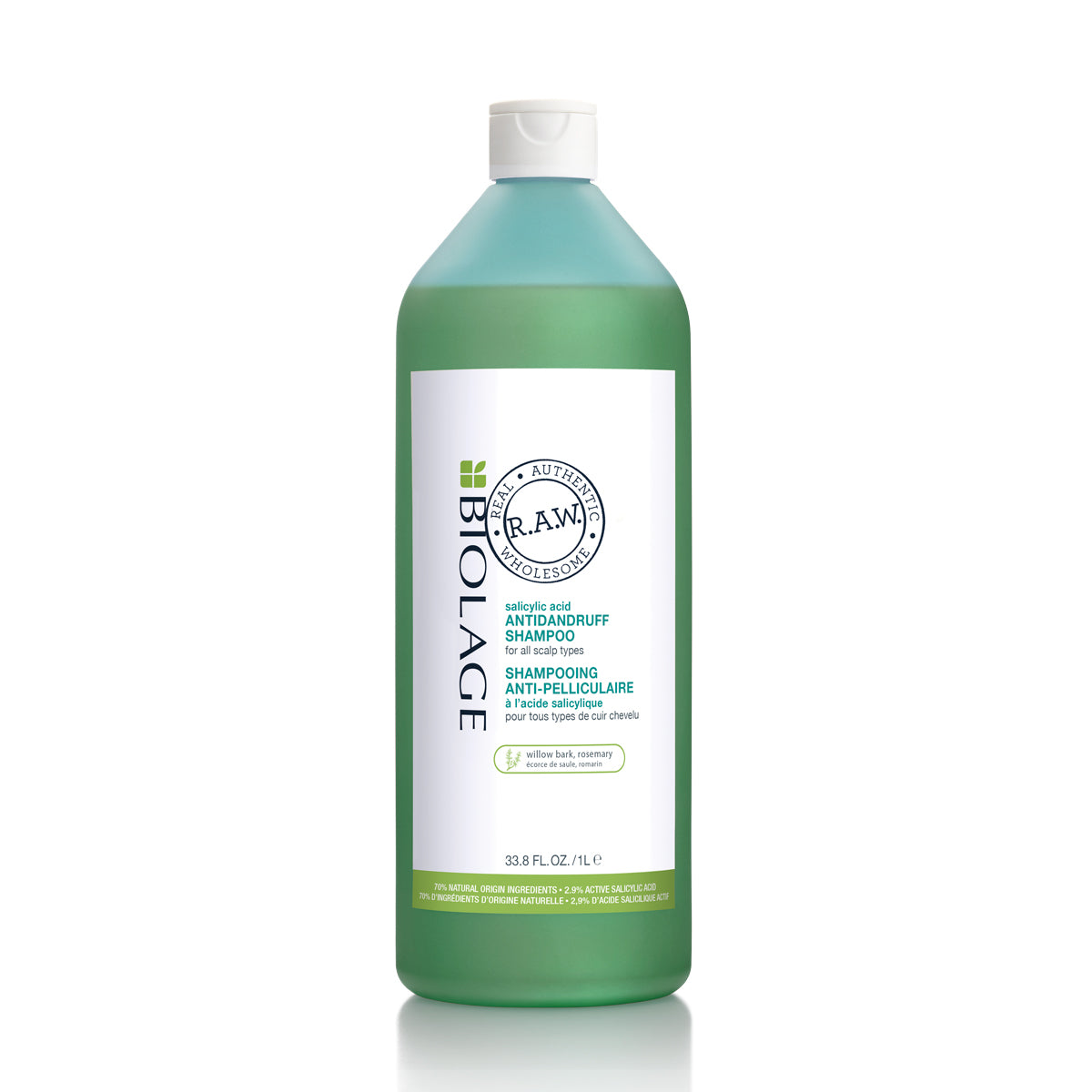 Le shampooing Biolage RAW utilise 2,9% d’acide salicylique actif et d’écorce de saule pour exfolier et purifier le cuir chevelu, aidant à éliminer les pellicules efficacement. Composé d’ingrédients naturels, il est sans sulfates ni parabènes, vegan, et testé sous contrôle dermatologique.