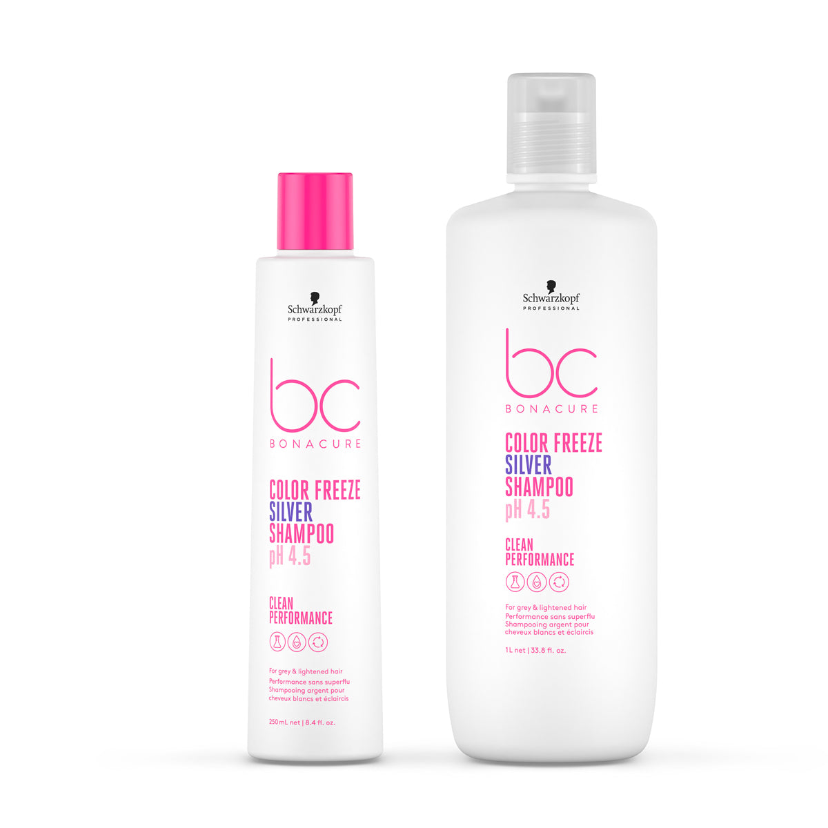 Indispensable pour les cheveux blancs ou éclaircis, le shampoing Argent de la gamme BC CP Silver de Schwarzkopf Professionnel leur redonnera du « pep’s » !