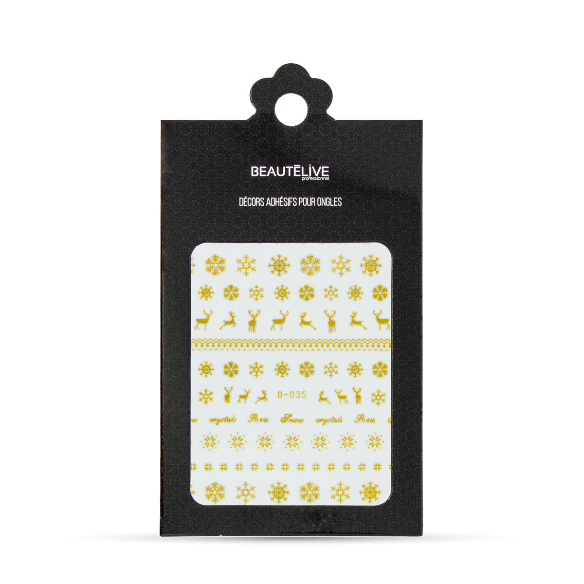 Planche de décors adhésifs pour ongles. Motif de Noël pour des ongles parfaits lors des fêtes de fin d'année. Coloris : Doré