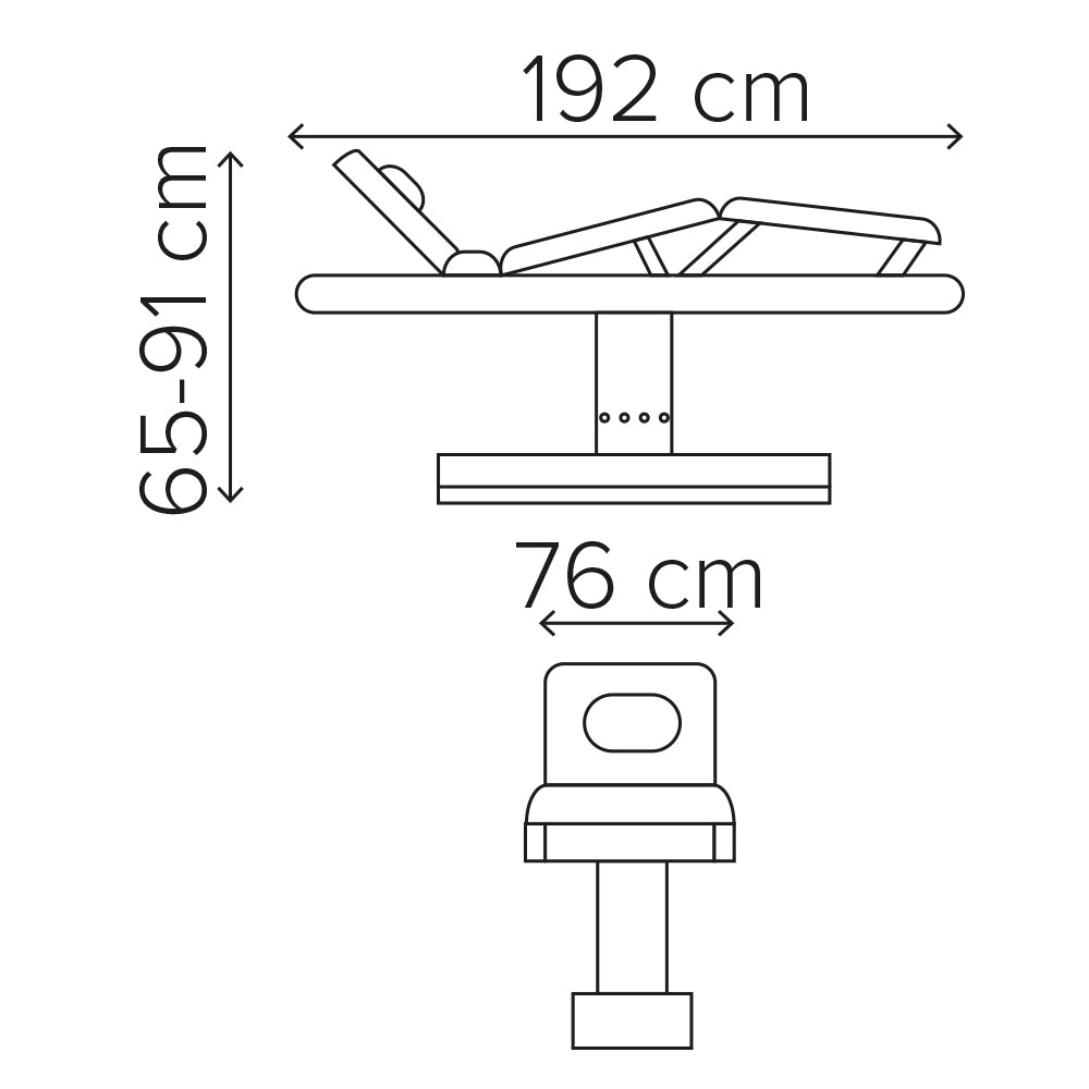 Dimensions : l=192cm, L=76cm, H=65cm/91cm