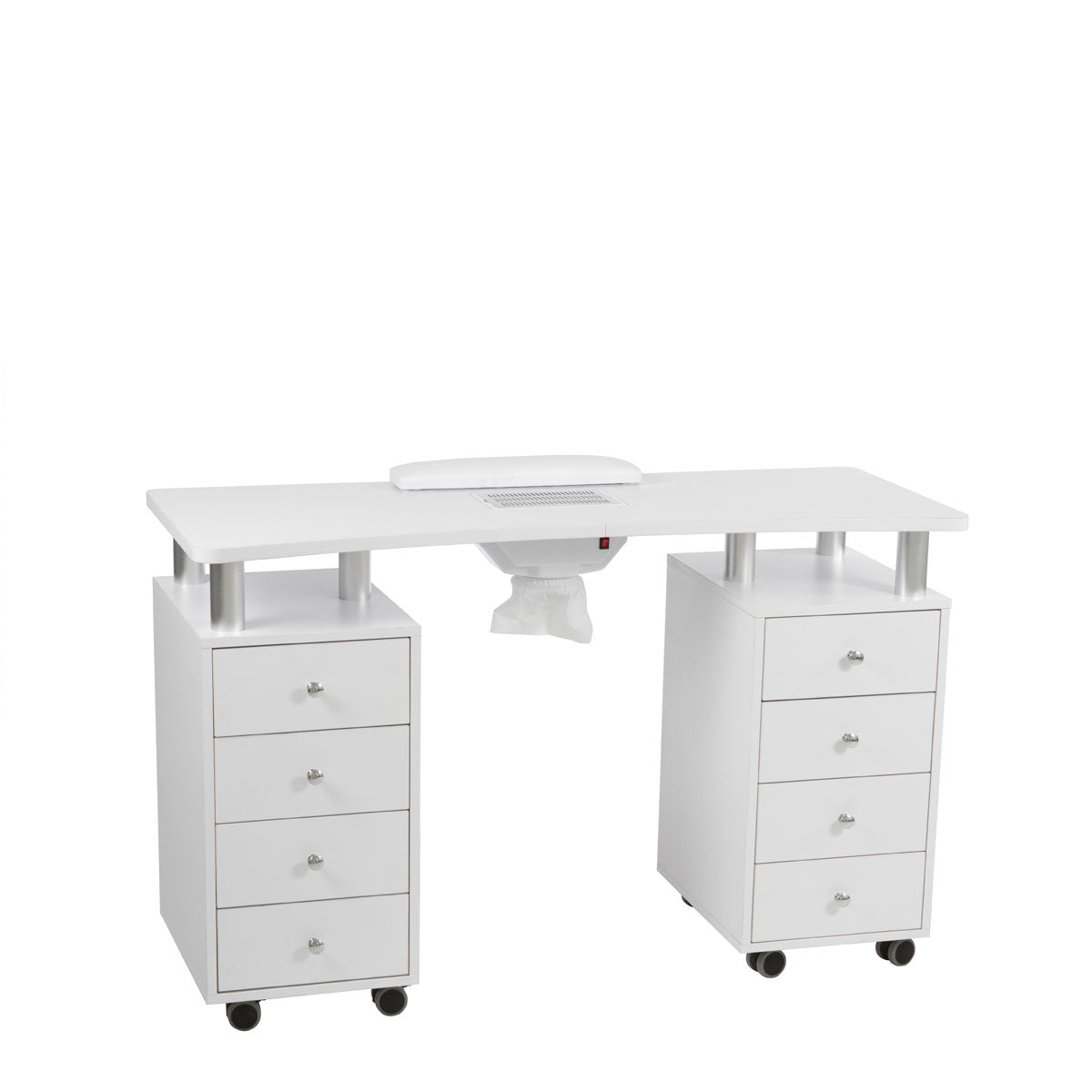 En effet, cette table est équipée de 2 caissons avec 4 tiroirs chacun. Ce qui lui fait beaucoup de rangements, chose essentielle pour ranger vos vernis normaux, vos vernis semi-permanents ainsi que votre petit matériel.