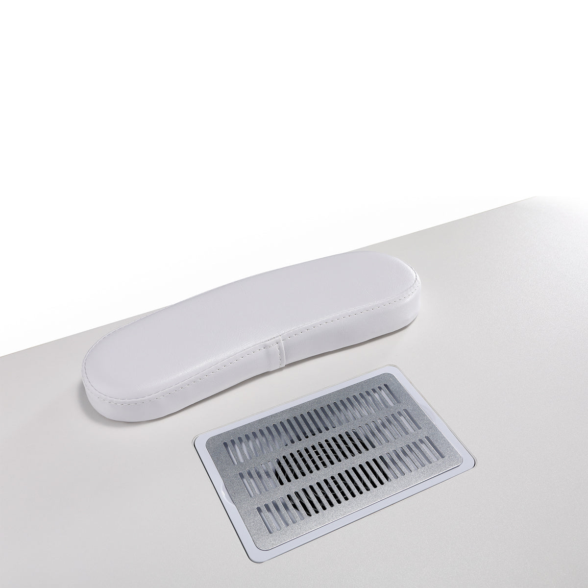 Sur le dessus de la table, on retrouve un aspirateur intégré et d'un collecteur de poussière pour garder une table parfaitement propre lors de vos prestations. Un coussin repose-main est également intégré à la table pour plus de confort.