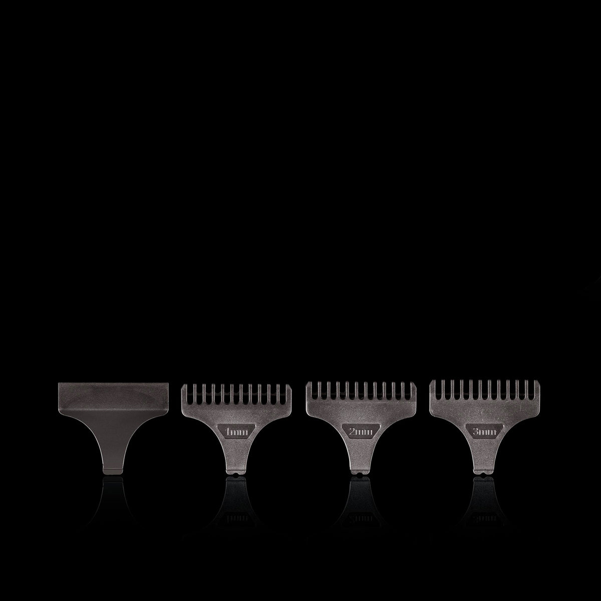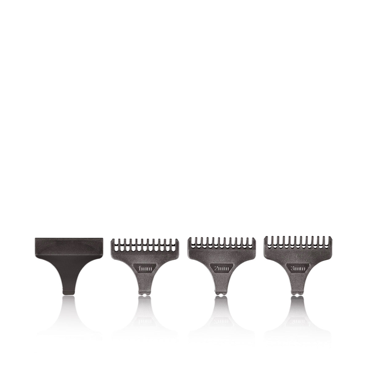 D'une grande précision, elle est idéale pour les finitions comme les contours d'oreilles, et la nuque, mais également les dessins et les coutours de la barbe. Le travail sera facilité grâce à sa lame en T, en acier inoxydable. De plus, elle est livrée avec 3 contre-peignes, afin d'offrir des finitions avec un fondu parfait.