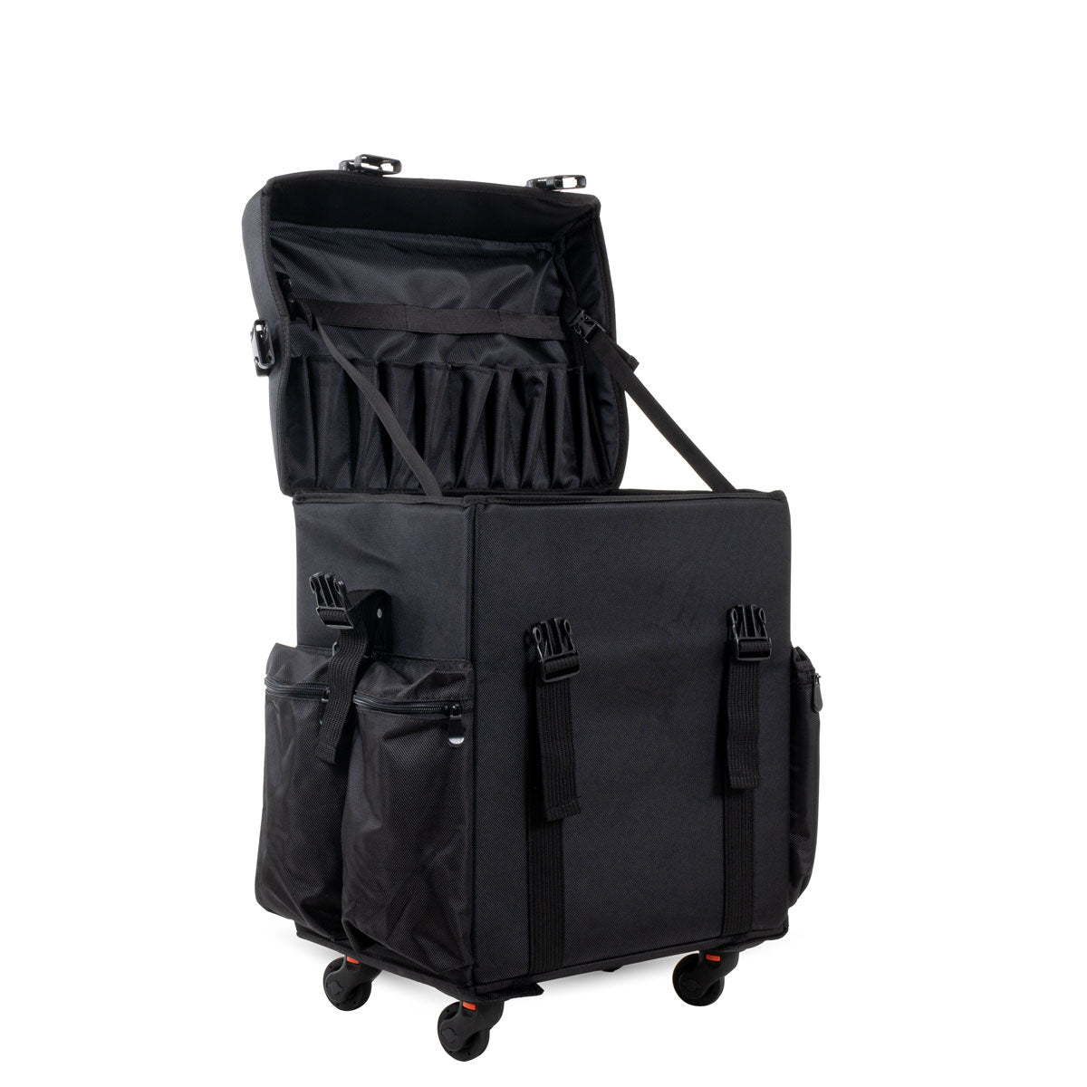 Découvrez la valise noire MEXICO dotée de plusieurs pochettes et de rangement pour vos pinceaux. Vous pouvez y ranger votre matériel d'esthétique ou de coiffure. La valise MEXICO possède 4 roulettes